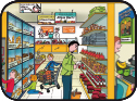 Paul an Emma kuupe hal för hörens familje iin. Do luke jo jo uun, wat det uun a laaden ales jaft: soföl slacher bruad, marigs an marmelaade. Diar stun butler, glees, paken an duusen. An jo ferschük tu leesen, wat üüb dön bruket skäälten üübstäänt.