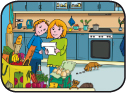 Schük di hoker, wat hal salaat, seesbruad, moolk, pankuuken, … at.